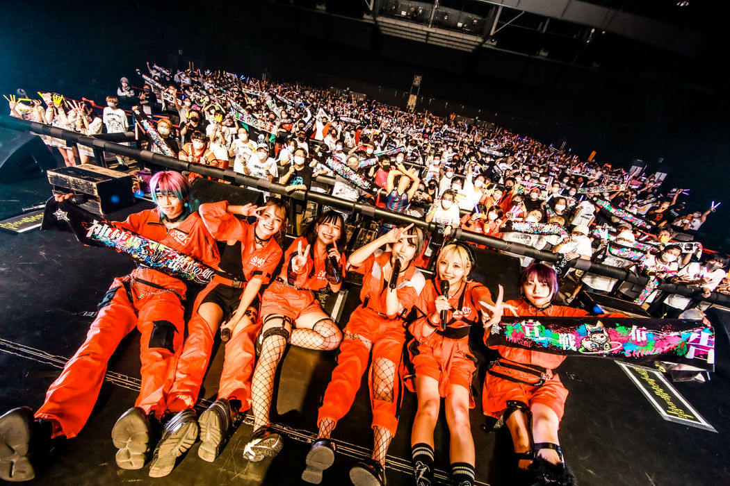 ファンの歓声が上がる中、メンバーがスポットライト浴びて歌っている姿を。